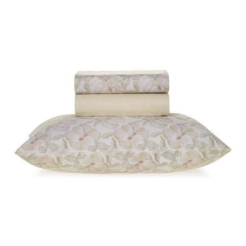 Embalagem: 1 lençol plano, 1 lençol com elástico e 1 fronha