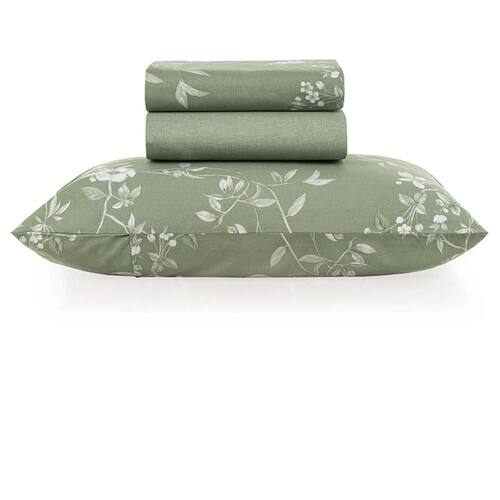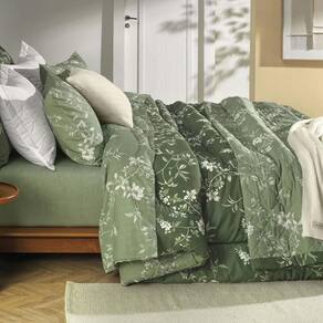 Marcella traz frescor e transforma o ambiente com delicadeza e aconchego. A estampa da fronha e do sobrelençol apresenta florais delicados que se destacam sobre a base em tom de verde. O lençol com elástico acompanha a paleta de cores, com uma padronagem de textura sutil, que harmoniza de forma leve. Com uma estampa de verde imponente que enriquece a decoração, o jogo de cama Marcella é perfeito para compor o quarto com conforto e elegância.