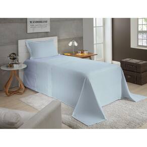 1 lençol, de 1,60 m x 2,47 m com dobra feita; 1 lençol com elástico, de 90 cm x 1,90 m x 30 cm; 1 fronha, de 50 cm x 70 cm com abas.
