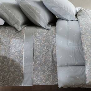 Lençol de cima Já o lençol de cima, deve ser sempre colocado sobre o lençol de baixo e, geralmente, tem uma indicação para dobrá-lo parcialmente no cobre-leito. Essa peça vem no jogo de cama com uma estampa diferente do lençol com elástico, garantindo que combinem entre si. Você também pode usá-lo para se cobrir nos dias que não são tão frios.