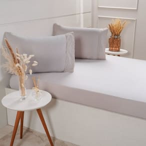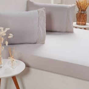 Jogo de Cama Solteiro Broderie 2 Pçs Bordado Inglês 88x188x30cm Gray -