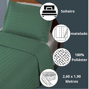 Jogo de Cama Solteiro Copacabana Matelado Percal 300 Fios Variação: Verde Seja bem-vindo a Está em busca de uma cama mais confortável e elegante Na Atual Ecommerce, entendemos que o seu quarto é o seu refúgio - e cada detalhe importa. Por isso, apresentamos o Kit Cobre Leito Copacabana 2 Peças Solteiro Matelado Percal 300 Fios. Você já se frustrou com jogos de cama ásperos, que esquentam demais ou desbotam rápido Pensando nisso, desenvolvemos um produto que une maciez, qualidade e sofisticação para tornar sua experiência ainda mais prazerosa - seja para o dia a dia ou para um quarto bem arrumado. Conforto Premium: Tecido percal 300 fios 100% poliéster com toque suave e estrutura matelada. Clientes relatam noites mais confortáveis e melhor conservação do tecido mesmo após várias lavagens. Design Moderno e Versátil: A coleção Copacabana oferece cores elegantes que se adaptam a diferentes estilos de decoração, ideal para jovens e adultos. Praticidade no dia a dia: Fácil de lavar, secagem rápida e já vem com porta-travesseiro em tamanho padrão com aba americana para dar o toque final à sua cama. Especificações Técnicas: Kit com 2 Peças 01 Cobre-leito: 2,60 m x 1,90 m 01 Porta-travesseiro: 70 cm x 50 cm com aba americana Tecido: 100% poliéster, percal 300 fios Enchimento: Manta 100% poliéster Acabamento: Matelado em costura, toque aveludado Cores disponíveis: 5 opções : 3 meses contra defeitos de fabricação Imagens meramente ilustrativas. As tonalidades podem variar de acordo com o monitor ou dispositivo. Este é o produto ideal para quem deseja uma cama bem feita, confortável e cheia de estilo sem complicação. Atual Ecommerce agradece a sua visita - conte com a gente para transformar sua casa em um lar mais bonito e acolhedor. Marca: Não Informado