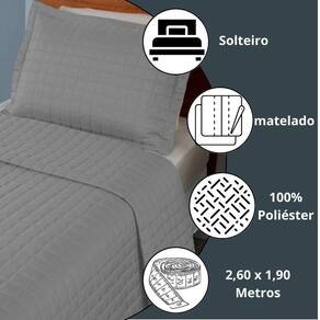 Jogo de Cama Solteiro Copacabana Matelado Percal 300 Fios Variação: Cinza Seja bem-vindo a Está em busca de uma cama mais confortável e elegante Na Atual Ecommerce, entendemos que o seu quarto é o seu refúgio - e cada detalhe importa. Por isso, apresentamos o Kit Cobre Leito Copacabana 2 Peças Solteiro Matelado Percal 300 Fios. Você já se frustrou com jogos de cama ásperos, que esquentam demais ou desbotam rápido Pensando nisso, desenvolvemos um produto que une maciez, qualidade e sofisticação para tornar sua experiência ainda mais prazerosa - seja para o dia a dia ou para um quarto bem arrumado. Conforto Premium: Tecido percal 300 fios 100% poliéster com toque suave e estrutura matelada. Clientes relatam noites mais confortáveis e melhor conservação do tecido mesmo após várias lavagens. Design Moderno e Versátil: A coleção Copacabana oferece cores elegantes que se adaptam a diferentes estilos de decoração, ideal para jovens e adultos. Praticidade no dia a dia: Fácil de lavar, secagem rápida e já vem com porta-travesseiro em tamanho padrão com aba americana para dar o toque final à sua cama. Especificações Técnicas: Kit com 2 Peças 01 Cobre-leito: 2,60 m x 1,90 m 01 Porta-travesseiro: 70 cm x 50 cm com aba americana Tecido: 100% poliéster, percal 300 fios Enchimento: Manta 100% poliéster Acabamento: Matelado em costura, toque aveludado Cores disponíveis: 5 opções : 3 meses contra defeitos de fabricação Imagens meramente ilustrativas. As tonalidades podem variar de acordo com o monitor ou dispositivo. Este é o produto ideal para quem deseja uma cama bem feita, confortável e cheia de estilo sem complicação. Atual Ecommerce agradece a sua visita - conte com a gente para transformar sua casa em um lar mais bonito e acolhedor. Marca: Não Informado