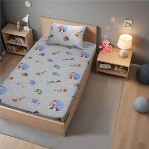 Jogo De Cama Solteiro Divertidamente Disney Malha 70% Algodão 30% Poliéster Cinza