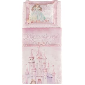Jogo de Cama Solteiro Infantil Princesinha 200 Fios Karsten Jogo de Cama Solteiro Infantil 200 Fios Karsten Com estampa exclusiva e atmosfera de conto de fadas, o jogo de cama Princesinha encanta com a imagem de uma princesa e seu unicórnio diante de um castelo nas nuvens. A fronha dimensionada destaca a personagem, enquanto o sobre lençol tem fundo rosado e vira com delicados ramos florais. O lençol com elástico traz padronagem ornamental suave, com pequenas coroas. É uma peça mágica e delicada para o quarto infantil. Combina perfeitamente com complementos em tons de rosa. Contém:1 lençol de cima com dobra feita. Tamanho: 1,80m x 2,50m1 lençol de baixo com elástico. Tamanho: 1,00m x 2,00m x 35cm1 fronha com 3 abas de 5cm. Tamanho: 50cm x 70cm Material: 200 fios, 100% algodãoEstampa: PrincesinhaMarca: Karsten Marca: Não Informado