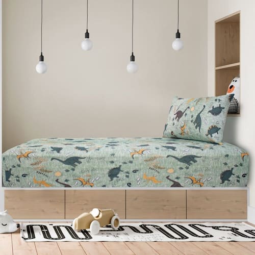 Jogo de Cama Solteiro Kids 2 Pçs Doce Vida Malha 70% Algodão 30% Poliéster Dino Selva -