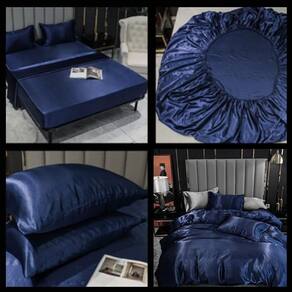 Jogo de cama Solteiro King completo 7 peças cetim toque de seda - Marinho com Prata
