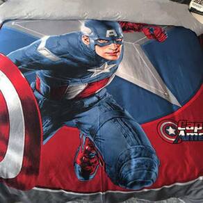 Kit jogo de cama Solteiro King infantil 4 peças Capitão AméricaMais uma coleção infantil desenvolvida pela grife para presentear e criar lindos decor para meninos e meninas. Não tem como não amar. Além da qualidade oferecida pela marca, nossos jogos são feitos em estampa digital, cores vivas e vibrantes, estrutura moderna sem a necessidade de costuras convencionais prejudicando a imagem e a qualidade do edredom, podendo lavar por várias vezes sem perder a resolução da imagem. O que vem no kit:1 edredom dupla face infantil de 200cm largura por 240cm comprimento - frente estampa Capitão América - costas cinza claro liso sem estampa 1 lençol com elástico de 96cm largura x 203cm comprimento x para colchões de até 35cm de altura - lençol cinza claro liso sem estampa na mesma cor das costas do edredom2 fronhas estampadas de 70cmx50cm - frente estampada Capitão América - costas cinza claro lisa sem estampa Do que é feito:Lençol, edredom e fronhas em microfibra 160 fios. Tecido de toque macio e anti-pillingEnchimento do edredom em manta siliconada - super fofinho e confortável.Fronhas capas de travesseiros não acompanham enchimento.Nossas peças são reconhecidas mundialmente pela qualidade e veracidade a qual vendemos pela internet.O produto a venda é composto por todas as peças da foto imagem, incluindo os enchimentos.Nossa estampa é 100% digital, podendo lavar por varias vezes sem perder a resolução da estampa e nem desbotar com o tempo.Atenção: o produto pode sofrer pequena alteração de tonalidade de cor dependendo da configuração do seu computador, tablet ou celular. Marca: Casa Da Fama