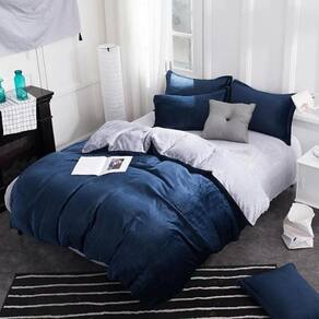 O que vem no Kit: 1 lençol com elástico para colchões tamanho solteiro king de até 40cm de altura - Tecido sued cinza claro. 1 edredom dupla face com enchimento 200x240cm - Frente tecido sued azul marinho e costas tecidos sued cinza claro. 2 capas de travesseiros de 70cm x 50cm - Tecido sued azul marinho - Capa de travesseiro sem enchimento. 1 Almofada de 45x45 cm com enchimento em fibra siliconada - Tecido sued cinza escuro, e botão estilo futon azul marinho.