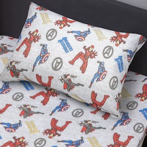 • 1 Lençol Solteiro Vingadores Malha 88x188x30cm 1 Fronha Vingadores Malha 48x68cm