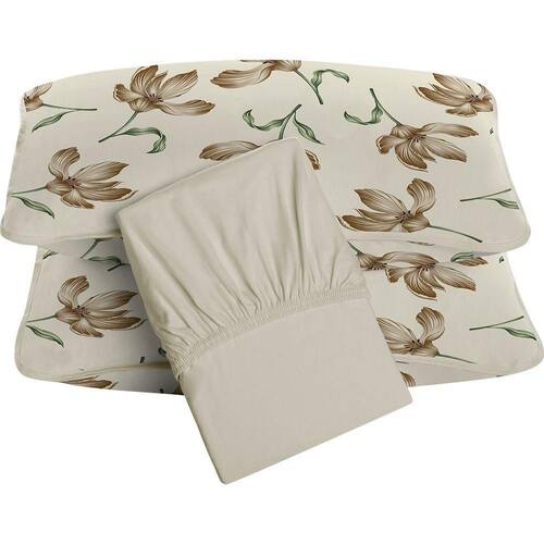 Jogo De Cama Tecebem Casal Malha 100% Algodão Tais 3 Peças Premium Baunilha Chegou a Nova Coleçao de cama da Tecebem 2025, é muito versátil, pois você pode usar o conjunto ou as peças separadas, pode usar a fronha sobre qualquer lençol ou até como uma decoração para a cama, o lençol com elástico é liso e se torna uma peça coringa para sua casa. É um produto de alta qualidade, durável e resistente. Você irá se surpreender com a qualidade e a beleza desse jogo de cama. Tais Beleza Clássica! Esta estampa em malha Baunilha com flores inspirada na flor amarílis, simboliza o amor e a alegria, deixando seus momentos de descanso repletos de paz.