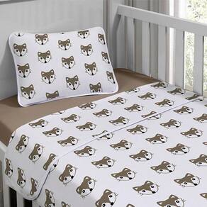 Conteúdo e Medidas: Jogo de Cama Estampado - Dori - 03 Peças. 01 Lençol com Elástico Malha Liso (70cm x 130cm x 15cm) 01 Sobre Lençol Malha Estampado (90cm x 170cm) 01 Fronha Baby (34cm x 40cm)