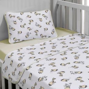 Conteúdo e Medidas: Jogo de Cama Malha Mini Cama(Montessoriana) - Lili - 03 Peças 01 - Sobre Lençol Malha Estampado(90cm x 1,70m) 01 - Lençol Malha Mini Cama(Montessoriana) Liso c/ Elástico (70cm x 150cm x 15cm) 01 - Fronha Malha Estampada (34cm x 40cm)