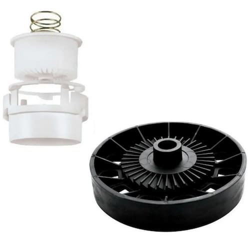 Jogo de cames completo com polia poli v para lavadoras Brastemp e Consul. Inclui mola do came, came externo, came articulado e anel deslizante. Diâmetro externo da polia: 11 cm. Altura da polia: 2 cm. Furo do retentor: 2,2 cm.Proteção para