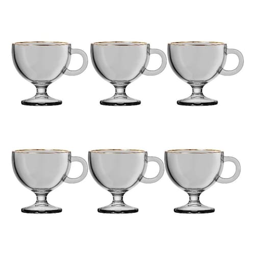 Jogo de Canecas 80ml com Borda Dourada em Vidro Haüskraft