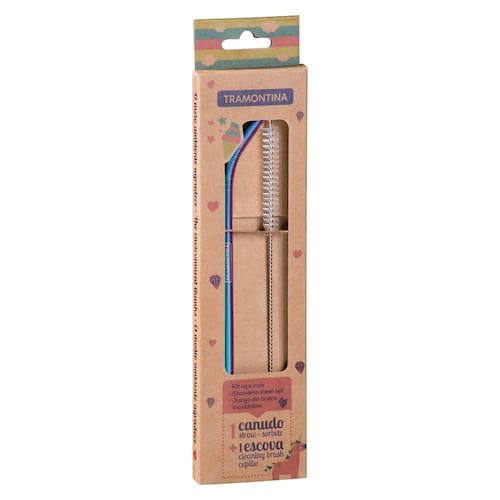 Jogo De Canudos Tramontina Infantil Furta-cor Em Aço Inox Com Escova 2 Peças Tramontina Jogo de Canudos Tramontina Infantil Furta-Cor em Aço Inox com Escova 2 Peças Tramontina - Para saborear as suas bebidas com mais cor e estilo utilize o Jogo de Canudo Tramontina Infantil Furta-Cor em Aço Inox com Escova 2 Peças. Esse canudo além de ser fabricado totalmente em aço inoxidável reutilizável, material é altamente durável e resistente, tornando esse item ecológico por poder ser várias vezes sem riscos de prejudicar a eficácia do em aço inoxidável reutilizável. Totalmente feito de aço inox, por isso não solta nenhum resíduo. Altamente durável mantém suas características , preservando a beleza, a higiene e a durabilidade do material. Material de alta resistência, não enferruja, não transfere odor e nem gosto. Ideal para cocktails, refrigerantes e sucos. Design curvado moderno, inovador e compacto, sendo facilmente levado a qualquer lugar. Acompanha escova de limpeza. Fácil de limpar. Pode ser utilizado para bebidas frias ou quentes. Canudo Furta-Cor.ObservaçõesPara a limpeza do canudo, utilizar a escova de nylon que acompanha o produto, para que o alcance da higienização seja de 100%. Não lavar com materiais abrasivos, após o lavar com esponja macia e sabão neutro, guardar o produto seco. Pode ser lavado em máquina de lavar louças.Características Líquido0,0170 Bruto0,0170 kg.Metragem0,000150 m.Dimensões Embalagem (Compr. X Larg. X 212x 12 ões Produto (Compr. X Larg. X 212x 12 mm. Características Gerais do Produto: Garantia: - 1 Ano