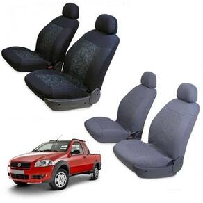 Jogo de Capa de Banco Picape Tecido Preto - Carrhel Código: 045 Fácil instalação. Tamanho único. Aplicação universal. Sistema de fitas aderentes, dispensa retirar o encosto de cabeça. Fecho rápido com elástico. Esta embalagem contém: -02 Capas para bancos dianteiros. -02 Tocas encosto de cabeça. Composto por: Parte superior tecido acoplado com espuma e forro. Tecido 100% Poliéster; Espuma 100% Poliuretano; Forro 100% Polipropileno; Parte inferior somente tecido somente 100% Poliéster. Validade Indeterminada.