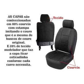 Capa De BancoConteúdo da Embalagem:- 2 Capas para banco dianteiros- 1 Capa para assento traseiro- 1 Capa para encosto traseiro- 5 Capas para encostos de cabeçaGarantia:- Garantia de 90 dias.- Este produto possui garantia apenas contra defeitos de fabricação, o mesmo não é válido em caso de mal uso.Precauções:- Lavar somente a mão em temperatura máxima 40°C- Secagem por gotejamento- Não alvejar- Não secar em tambor- Não passar- Não limpar a seco Marca: g/j