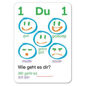 - Os alunos praticam fazer e responder perguntas igualmente em alemão. As perguntas cuidadosamente avaliadas sugerem a estrutura da língua alemã e fornecem uma base para o aprendizado futuro!