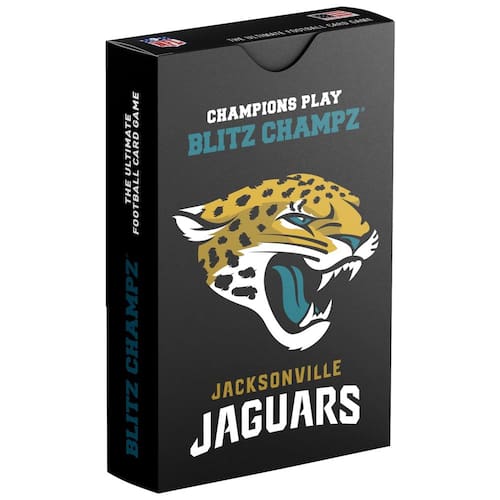 O jogo BLITZ CHAMPZ JACKSONVILLE JAGUARS é um divertido jogo de cartas de futebol para idades a partir de 7 anos! O Blitz Champz pode ser jogado por 2 a 6 pessoas ao mesmo tempo, tornando-o o jogo perfeito para crianças, amigos e familiares. Adicione mais diversão aos jogos da NFL e da faculdade, tailgating, e festas do Super Bowl com Blitz Champz! - Feito nos EUA. - Jogo de cartas Jacksonville Jaguars NFL oficialmente licenciado. - Jogável por 2 a 6 pessoas ao mesmo tempo. Jogo perfeito para crianças, famílias, festas na porta traseira e muito mais! - Inclui instruções de jogo e 100 cartas ilustradas de forma vibrante com jogadores de futebol masculino e feminino e bandeira. - Selecionado como vencedor do National Parenting Product Awards por ser divertido e reforçar habilidades matemáticas para crianças de 3 a 8 anos.