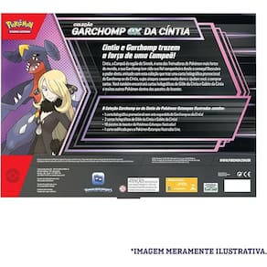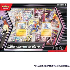 Cíntia, a Campeã da região de Sinnoh, é uma das Treinadoras de Pokémon mais fortes do mundo, e sua Garchomp tem sido sua fiel companheira desde o começo! Descubra o poder desta amizade com esta coleção que traz uma carta holográfica promocional de Garchomp ex da Cíntia, cujos ataques causam muito dano e ajudam você a comprar cartas Você também encontrará cartas holográficas de Gible da Cíntia e Gabite da Cíntia e muitos outros Pokémon dentro dos pacotes de booster