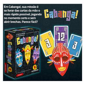 Em Cabanga!, sua missão é se livrar das cartas da mão o mais rápido possível, jogando no momento certo e sem abrir brechas. Parece fácil? Pois é aí que os outros jogadores entram em ação! Se você criar um intervalo entre os números das cartas, prepare-se: outros jogadores podem gritar “Cabanga!” e jogar cartas no meio da sua jogada, enchendo sua mão com pontos negativos!