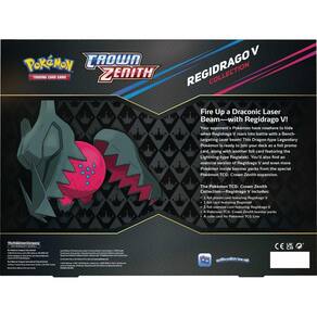 Pokemon TCG: Coleção Zenith Crown - Pokemon V Regieleki ou Regidrago - Você receberá, aleatoriamente, 1 Pokémon TCG: Coleção Crown Zenith temática para Regieleki V ou Regidrago V. - Dependendo da versão temática que você receber, você receberá 1 cartão promocional com Regieleki V ou Regidrago e 1 cartão grande com Regieleki V ou Regidrago V. - Você também receberá 1 carta com Regidrago ou Regielek e 4 pacotes booster Pokémon TCG: Crown Zenith. - Também vem com um cartão de código para Pokémon TCG Live.