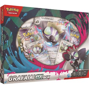 - O Pokémon TCG: Grafaiai ex Box inclui 1 cartão promocional metalizado com Grafaiai ex, 1 cartão promocional metalizado com Shroodle e 1 cartão metalizado grande com Grafaiai ex.