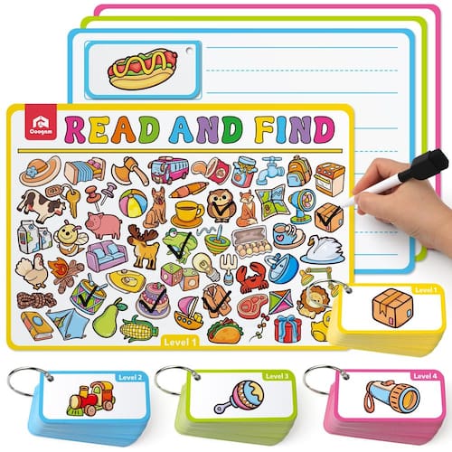 Prático presente educativo precoce: se você está procurando um ótimo presente para uma criança, este conjunto de cartões de busca e localização é uma boa opção de presente para o Dia das Crianças, aniversário, Natal, evento de volta às aulas e muito mais. Este brinquedo também é um ótimo auxílio de ensino para sala de aula ou escola em casa para ajudar as crianças a ler e escrever - Jogo de Aprendizagem Leia e Encontre: Existem 220 cartas pequenas com palavras, 4 cartas grandes com ilustrações de um lado e área de prática de caligrafia do outro. Este cartão de pesquisa e atividade faz com que as crianças leiam e encontrem 220 palavras de sinal, ajudando-as a aprender e escrever palavras diárias de uma maneira divertida e interativa. - Ajude as crianças a construir vocabulário: escolha uma palavra e peça às crianças que a encontrem e escrevam no cartão de forma colorida, essas palavras sinalizadoras têm 4 níveis diferentes de dificuldade, adequadas para crianças de diferentes idades. Ajuda crianças com coordenação motora fina, observação, diversificação de vocabulário e muito mais. Recurso educacional perfeito para crianças brincarem e aprenderem - Feito com cuidado e qualidade: laminação resistente com filmes resistentes à água para garantir a durabilidade e longevidade dos brinquedos Find It Montessori, que são apagáveis, reutilizáveis e seguros para as crianças usarem. Cada cartão baseado em imagem tem ilustrações vívidas e divertidas. Imagens vibrantes chamam a atenção das crianças facilmente, dando a elas uma melhor compreensão dessas palavras - Fácil de transportar para viagens rodoviárias: inclui 4 anéis de metal e uma bolsa de armazenamento para manter todos os brinquedos de busca e encontrar juntos, sem dispersão ou falta! É leve e cabe perfeitamente em uma mochila ou mala. Este é um ótimo brinquedo de viagem para manter seus filhos ocupados e entretidos em longas viagens de carro e viagens aéreas - Prático presente educativo precoce: se você está procurando um ótimo presente para uma criança, este brinquedo educativo de busca e encontre é uma boa escolha de presente para recheios de cesta de Páscoa, dia das crianças, aniversário, Natal, evento de volta às aulas e muito mais. Este brinquedo educativo de jogo de festa também é um ótimo auxílio de ensino para sala de aula ou escola em casa para ajudar as crianças a ler e escrever