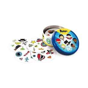 Dobble: DC Universe, onde o mundo dos super-heróis colide com a diversão de Dobble Com símbolos da DC em arte 'Toy' que trazem a magia desse universo para suas partidas. Encontre todos os heróis e vilões nessa batalha de cartas eletrizante