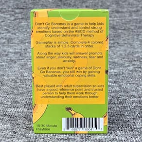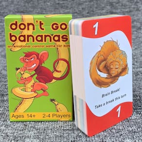 Material: papel Cor: verde Tamanho da embalagem: 12,3 × 7,3 × 2 cm Peso da embalagem: 0,135 kg Lista de embalagem: 1 x Jogo de cartas Don't Go Bananas (50 cartas) Jogo divertido de controle emocional — Don't Go Bananas é um jogo de cartas envolvente projetado para ajudar os jogadores a praticar paciência, controle emocional e tomada de decisão inteligente durante o jogo. Perfeito para noites de jogos em família — Adequado para 2 a 4 jogadores, este divertido jogo de cartas traz risadas e competição amigável para reuniões familiares e noites de festa. Educacional e interativo — Incentiva os jogadores a gerenciar emoções, pensar estrategicamente e reagir com cuidado, tornando-se uma ótima ferramenta de aprendizado para crianças e adolescentes. Regras fáceis de aprender — Uma mecânica de jogo simples permite que novos jogadores entendam o jogo rapidamente, ao mesmo tempo em que fornece estratégia suficiente para manter todos engajados. Design de jogo de cartas portátil — O baralho de cartas compacto e a caixa leve facilitam o transporte para viagens, atividades escolares, festas ou viagens em família.