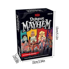 Material: papel Cor: preto Tamanho do pacote: 13 × 10 × 3 cm Peso do pacote: 0,25 kg Lista de embalagem: 1 x Conjunto de jogos de cartas Fantasy (50 cartas) Fast Paced Fantasy Battle Game — Dungeon Mayhem é um emocionante jogo de cartas ambientado no universo Dungeons & Dragons, onde os jogadores lutam usando poderosas habilidades de personagens. Poderes de personagem únicos — Escolha entre diferentes heróis de fantasia, cada um com habilidades e estratégias únicas que criam uma jogabilidade emocionante e imprevisível. Perfeito para noites de jogos — Projetado para 2 a 4 jogadores, este jogo de cartas cheio de ação é ótimo para noites de jogos em família, festas e reuniões de mesa. Fácil de aprender e rápido de jogar — Regras simples permitem que os jogadores comecem rapidamente, enquanto combinações estratégicas de cartas mantêm cada partida dinâmica e divertida. Arte de fantasia imersiva — Ilustrações coloridas de personagens e design temático trazem a atmosfera de aventura nas masmorras a cada rodada.