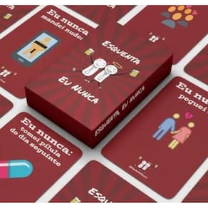 Jogo de cartas - esquenta, eu nunca Esquenta, eu nunca - baralho: O clássico eu nunca para animar suas resenhas, são cartas picantes com coisas que vai deixar a resenha muito mais polêmica adquira o seu e suas resenhas nunca mais serão as mesmas.Conteúdo:- 54 cartas feitas de papel cartão laminado (resistente à água)- 1 manual de instruções Recomendado para maiores de 18 anos Marca: Stoys