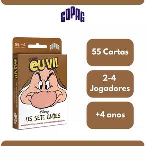 Os Sete Anões chegaram à coleção Eu Vi, trazendo ainda mais diversão e desafio para o seu jogo de observação e velocidade. Prepare-se para olhar atentamente, identificar padrões e ser o mais rápido a gritar Eu Vi para conquistar a carta da rodada. Será que você consegue encontrar as figuras antes de todo mundo Com uma mecânica dinâmica e envolvente, Eu Vi Os Sete Anões é perfeito para jogar com a família, reunir amigos e até levar para viagens. Simples, rápido e viciante O que vem na caixa 55 cartas ilustradas formato 56 mm x 87 mm Regras do jogo Dica: Quanto mais rápido você for, mais pontos acumula Garanta já o seu e divirta-se com Eu Vi Os Sete Anões