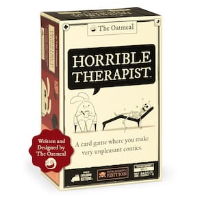 - Como jogar: Quem sabia que a terapia poderia ser tão engraçada? Neste jogo de cartas para adultos, você criará uma história em quadrinhos sobre terapia com uma pergunta, resposta e tratamento. Quem colocar a carta de tratamento mais engraçada ganha um ponto. O primeiro a 3 pontos ganha. É uma adição divertida e histérica à sua coleção de jogos de cartas de festa.