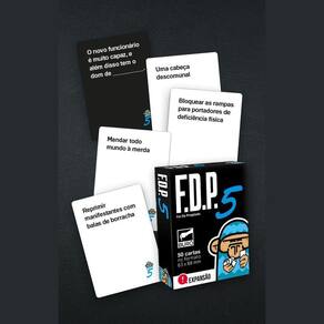 Jogo de cartas fdp expansão foi de propósito 5 - buró Desperte a 5º série ainda mais fdp dentro de você se você era um projetinho de fdp Expansão com 50 novas cartas para o conjunto básico de fdp. São 40 novas cartas brancas com respostas e 10 novas cartas pretas com perguntas que podem e devem ser misturadas com as cartas do conjunto básico de fdp. Este produto é uma expansão. Você precisará da caixa completa de fdp para usar a expansão fdp 5. Componentes: 10 cartas pretas,40 cartas brancas Ficha técnica:Idade: 18+;Jogadores: 4 a 12;Duração: 60 minutos;Sleeve: 50 63.5 mm x 88.0 mm ;Categoria: expansão;Mecânicas: seleção de cartas;Temas: adulto; humor;Idioma: português br.Homologação Inmetro: IP-BRI-1432/2021-01
