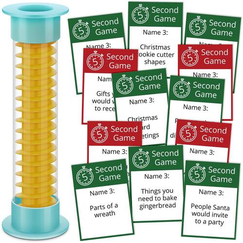 Características: Esta noite de jogos de cartas de família é versátil. Pode ser o jogo de cartas que sua festa precisa para manter todos divertidos, engajados e energizados a noite toda. Os jogos de cartas testam suas habilidades de raciocínio rápido e fala rápida. Ele não apenas torce seu cérebro, mas também testa sua velocidade. Especificações: Material: papel Cor: multicor Tamanho: Cartão: 3,43 x 2,24 polegadas/8,7 x 5,7 cm (C x L) Ampulheta: 5,12 polegadas/13 cm (A) A embalagem inclui: 1 ampulheta. 72 cartões. Observações: Medição manual, considere pequenos erros no tamanho. A cor pode existir uma pequena diferença devido a diferentes telas. - Jogo de 5 segundos: com 72 cartas e o temporizador de ampulheta de 5 segundos, o "jogo de 5 segundos" é a boa maneira de apimentar sua noite de jogo em família - Fácil de jogar: as regras são fáceis, basta escolher uma carta, ler o tema, nomear 5 coisas, tudo contra um temporizador de 5 segundos; essa simplicidade torna esses jogos de cartas uma boa maneira de quebrar o gelo em qualquer reunião - Adicione risos ao Natal: nosso jogo de cartas pode ser uma parte memorável de suas celebrações de Natal; jogue com sua família, convidados ou use-o como uma atividade divertida em sua festa de Natal - Design portátil: devido aos tamanhos adequados para viagens (cartão: 3,43 x 2,24 polegadas/8,7 x 5,7 cm, ampulheta: 5,12 polegadas/13 cm), você pode carregar convenientemente este jogo de cartas da família com você - Jogos de cartas engraçados dinâmicos: ao contrário de outros jogos de cartas, nossos jogos de cartas engraçados para adultos trazem ação dinâmica e risos; em apenas alguns momentos, você pode transformar uma noite aparentemente comum em um momento divertido extraordinário