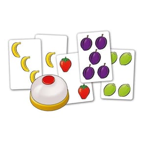 Cada jogador revela uma carta do seu baralho por vez e, à medida que cada carta é revelada, no instante em que você perceber um total de 5 frutas iguais na mesa, toque a sineta Se estiver correto, você recebe todas as cartas jogadas, senão você paga uma carta aos outros jogadores. Quem tiver mais cartas no final, vence