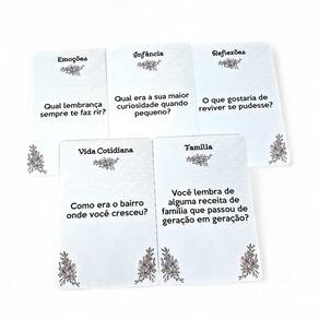 Com cartas cheias de encanto, o jogo desafia você contar a sua histórias de vida, despertando lembranças e fortalecendo o raciocínio. Cada rodada é uma nova oportunidade de exercitar o cérebro, dar boas risadas e compartilhar momentos especiais com amigos e família.