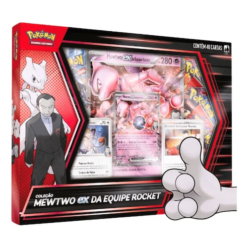 Cartas Pokémon Coleção Mewtwo ex e Giovanni Líde da Equipe Rocket - Copag Prepare-se para mergulhar no lado sombrio do universo Pokémon com a Box Pokémon Mewtwo ex da Equipe Rocket! Esta edição especial traz o lendário Mewtwo ex em versão holográfica promocional, além de cartas exclusivas do Meowth e do infame Giovanni, líder da Equipe Rocket Ideal para fãs da franquia, colecionadores e jogadores que buscam cartas poderosas e diferenciadas A box inclui ainda uma carta extragrande de Mewtwo ex, 6 pacotes de booster para expandir sua coleção com novas estratégias, e um código para o Pokémon TCG Live, para você duelar online com jogadores do mundo todo Perfeita para quem é apaixonado pela Equipe Rocket ou quer adicionar um toque de vilania à sua coleção, essa box é um item indispensável para todas as idades a partir dos 7 anos
