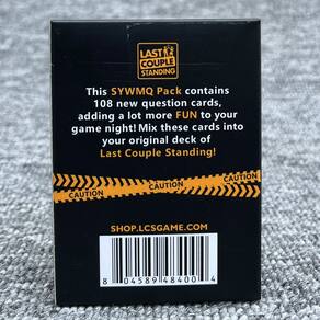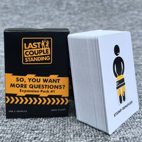 “Last Couple Standing é um jogo de cartas emocionante e hilário para casais. Os jogadores respondem juntos a uma série de perguntas divertidas e instigantes. O objetivo é ver qual casal é forte e responde corretamente à maioria das perguntas.” “Este jogo inclui a pergunta 'Então, você quer mais perguntas? ' Pacote de expansão, oferecendo ainda mais perguntas e desafios para casais que querem apimentar as coisas. É perfeito para casais que adoram competições divertidas.” “Projetado para mais de 2 casais, este jogo é ideal para noites de jogos, festas ou qualquer momento em que você queira desfrutar de bons momentos com seu parceiro. É alegre, envolvente e traz muitas risadas.” “Last Couple Standing é adequado para adultos maiores de 18 anos, o que o torna um ótimo complemento para qualquer reunião social. Sua mecânica simples permite que todos joguem, ao mesmo tempo em que oferece uma vantagem competitiva para manter as coisas empolgantes.” “Com foco na conexão e na comunicação, este jogo de cartas é a maneira perfeita de aprender mais uns sobre os outros enquanto se divertem. O pacote de expansão adiciona variedade, garantindo que você nunca fique entediado com as mesmas perguntas.”