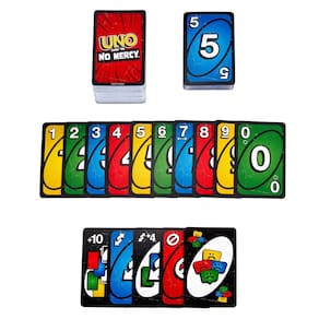 - o jogo UNO Show 'em No Mercy adiciona mais 56 cartas, regras especiais e cartas de ação extremamente difíceis para a edição mais brutal de UNO de todos os tempos!