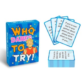 Material: papel Cor: azul Tamanho da embalagem: 6,7 × 1,8 × 9 cm Peso da embalagem: 0,09 kg Lista de embalagem: 1 x Conjunto de jogos de cartas Who Dares To Try (50 cartas) Fun Dare Challenge Party Game — O jogo de cartas Who Dares To Try inclui desafios e perguntas divertidos que incentivam os jogadores a correr riscos, rir juntos e criar momentos de festa memoráveis. Quebra-gelo perfeito para eventos sociais — Ideal para festas, noites de jogos, encontros e celebrações onde os amigos podem se desafiar e desfrutar de uma competição divertida. Fácil de aprender e jogar — Basta comprar uma carta e completar o desafio ou responder à solicitação, tornando-o um jogo rápido e envolvente para grupos de todos os níveis de experiência. Baralho de cartas portátil e compacto — A caixa de cartas leve é fácil de transportar para festas, férias ou encontros para que a diversão possa começar a qualquer hora e em qualquer lugar. Ótimo presente para amantes de festas — Uma opção de presente divertida para amigos, estudantes universitários e qualquer pessoa que goste de jogos sociais, desafios interativos e atividades divertidas em grupo.