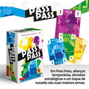 Pass Pass Em pass Pass, alianças temporárias, Decisões estratégicas e um toque de ousadia são suas maiores . A cada rodada, Os jogadores competem jogando Cartas para conquistar pontos. O Segredo está em influenciar a mesa, tornar sua Cor dominante e garantir a Vitória. E mais: Qualquer jogador pode encerrar o jogo de forma épica ao alcançar Três pass pass Com partidas Rápidas e muita interação, pass pass é perfeito para quem busca Estratégia e diversão Como Jogar sistema 1 - 2 - 3 1 jogue uma Carta e forme alianças temporárias para garantir que a cor da sua Carta seja predominante. 2 ganhe cartas Para pontuar o máximo possível ao longo de 3 rodadas. 3 mas não se Esqueça: conquistar 3 pass pass significa vitória imediata Pontos Chave e diferenciais de venda Um jogo Dinâmico de vaza para 3 a 6 jogadores com Partidas cheias de reviravoltas, pass pass desafia você a formar Alianças temporárias para conquistar cartas valiosas Dois modos De jogo: individual e em times Jogue sozinho contra os outros ou em duplas o modo time traz uma Nova camada de cooperação e competição. Estratégia E cor na sua mesa cada rodada É vencida pela cor que somar o maior valor. Jogue com inteligência Para controlar a mesa e levar as melhores cartas Pontuação Estratégica para o fim de jogo Cada carta não só contribui para sua coleção de cores, mas Também oferece pontos baseados em diamantes, adicionando uma camada extra ao jogo. Pass pass: O caminho para a vitória se Você conseguir reunir 4 cartas de cores diferentes, ganha um pass Pass três pass pass garantem a vitória instantânea Será que você consegue Pequeno, Barato e divertido pass pass é Mais um jogo da linha , fácil de transportar, barato e muito Divertido Homologação Inmetro: IP-BRI-4870/2018-09 Marca: Não Informado