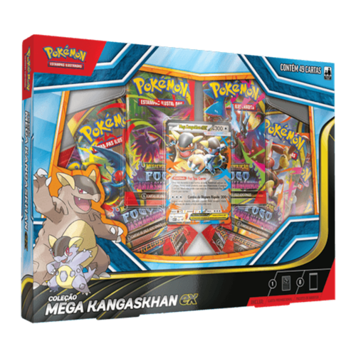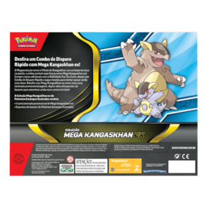 Desfira um Combo de Disparo Rápido com Mega Kangaskhan ex!A Megaevolução torna o filhote de Kangaskhan um combatente duro na queda, e ambos juntam suas forças como Mega Kangaskhan ex!Compre cartas adicionais com a Habilidade Faz Teu Corre, depois use Combo de Disparo Rápido e jogue moedas para tentar causar aindamais dano. Batalhe com Mega Kangaskhan ex como uma carta laminada promocional jogável, depois abra oito pacotes debooster para encontrar ainda mais cartas incríveis!A Coleção Mega Kangaskhan ex do Pokémon Estampas Ilustradas contém:• 1 carta laminada promocional de Mega Kangaskhan ex!• 8 pacotes de booster do Pokémon Estampas Ilustradas!