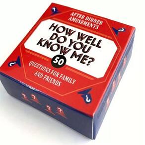 Material: Papel Cor: Vermelho Tamanho do pacote: 8,5 x 2 x 8,5 cm Peso do pacote: 0,09 kg Lista de embalagem: 1 x How Well Do You Know Me Know? Jogo de cartas (50 cartas) Jogo divertido e interativo: você me conhece bem? é um jogo de cartas divertido e interativo que desafia os jogadores com 50 dicas interessantes para testar o quão bem eles se conhecem, criando momentos de riso e união. Perfeito para familiares e amigos: ideal para jantares em família, festas ou reuniões casuais, este jogo oferece uma maneira envolvente e alegre de as pessoas se conectarem, compartilharem risadas e aprenderem mais umas sobre as outras. Simples e fácil de jogar: com regras fáceis de entender, este jogo pode ser aprendido rapidamente por jogadores de todas as idades. Ele foi projetado para ser jogado em um ambiente descontraído e divertido, sem exigir instruções ou estratégias complexas. Ótimo para vínculo e comunicação: perfeito para aprofundar conexões, este jogo promove a comunicação e a compreensão fazendo perguntas divertidas e instigantes que permitem que todos se conheçam melhor. Compacto e portátil: com seu tamanho pequeno e embalagem durável, você me conhece bem? é perfeito para viajar ou levar para uma noite de jogos. É um ótimo complemento para sua coleção de jogos para festas ou para a família.
