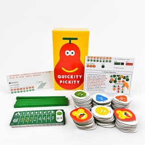 “Quickity Pickity é um jogo de cartas rápido para 2 a 5 jogadores, projetado para diversão social. O objetivo é combinar as cartas o mais rápido possível, tornando-as perfeitas para encontros casuais e diversão em família.” “Este jogo de ritmo acelerado apresenta regras simples, mecânica fácil de entender e jogabilidade empolgante, garantindo que jogadores de todas as idades possam participar e aproveitar a ação juntos.” “O Quickity Pickity inclui versões em inglês e chinês, oferecendo uma experiência inclusiva para todos os jogadores, seja você um falante nativo ou esteja aprendendo um novo idioma.” “Ideal para festas, noites de jogos ou eventos de formação de equipes, o Quickity Pickity promove raciocínio rápido, habilidades de memória e competição saudável, garantindo que todos permaneçam engajados durante todo o jogo.” “Com um design portátil e apenas 50 cartas, o Quickity Pickity é fácil de levar para qualquer lugar, tornando-o um excelente jogo de viagem. Prepare-se para uma experiência rápida e divertida, não importa onde você esteja.”