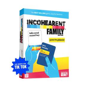 Incohearent Family Edition da Relatable, um jogo de cartas Guess the Gibberish perfeito para jogos de ação de amigos ou jogos de ação de graças para a família, feito para maiores de 12 anos, inclui