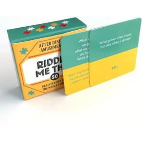 Material: Papel Cor: laranja Tamanho do pacote: 8 x 8 x 2,5 cm Peso do pacote: 0,1 kg Lista de embalagem: 1 x Riddle Me This Brain Teasers Card Game (50 cartas) Riddle Me This — Brain Teasers for Family Fun: Uma coleção de 50 quebra-cabeças divertidos e envolventes projetados para todas as idades. Perfeitos para entretenimento após o jantar, esses enigmas desafiam os jogadores a pensar de forma crítica e criativa. Ideal para todas as idades: Riddle Me Isso é adequado para todos, de crianças a adultos. É perfeito para noites de jogos em família, oferecendo uma ótima maneira de envolver toda a família em desafios educacionais e divertidos. Promove habilidades de resolução de problemas: esses quebra-cabeças não são apenas divertidos, mas ajudam a aprimorar o pensamento crítico, a memória e as habilidades de resolução de problemas. Uma forma divertida de estimular a mente e melhorar a função cognitiva. Compacto e portátil: a caixa pequena e portátil facilita levar este jogo para qualquer lugar. Seja em uma reunião familiar ou casual, Riddle Me This pode ser apreciado a qualquer hora, em qualquer lugar. Atividade perfeita após o jantar: desfrute de uma atividade relaxante e divertida após uma refeição. Riddle Me This oferece uma maneira divertida de passar bons momentos com seus entes queridos, criando momentos memoráveis de riso e resolução de problemas.
