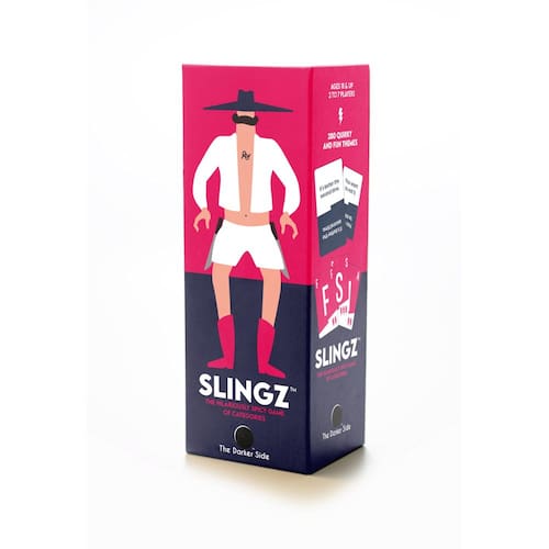Jogo de cartas Slingz - The Quick and Hilariously Spicy Categories | 2 a 7 jogadores | para adultos, estudantes universitários, noites de jogos, festas e muito mais | da The Darker Side Games - Slingz é o jogo onde não há palavras seguras e você pode falar sujo a noite toda! Comece sua noite de jogo com Slingz, o jogo de cartas hilário e picante das categorias. - Seu objetivo é encontrar palavras ou frases curtas começando com as letras em sua mão, ajustando-se ao tema em jogo. Os 280 temas podem parecer inocentes o suficiente quando interpretados literalmente, mas as coisas podem ficar muito loucas quando você joga Slingz! - Inclui 280 cartas de dupla face, com de um lado um tema divertido, do outro lado uma carta. Impresso em cartas de baralho premium. - Como jogar: distribua 5 letras para cada jogador e revele um tema. Pense em palavras ou frases curtas que se encaixam no tema e comece com sua letra. Coloque suas cartas dizendo suas palavras. Após 3 palavras, vire a letra para cima para revelar um novo tema. O primeiro jogador a colocar 5 letras ganha a rodada! - The Darker Side A Games também abriga Analyze Me, o jogo de festa para conhecer muito melhor seus amigos!